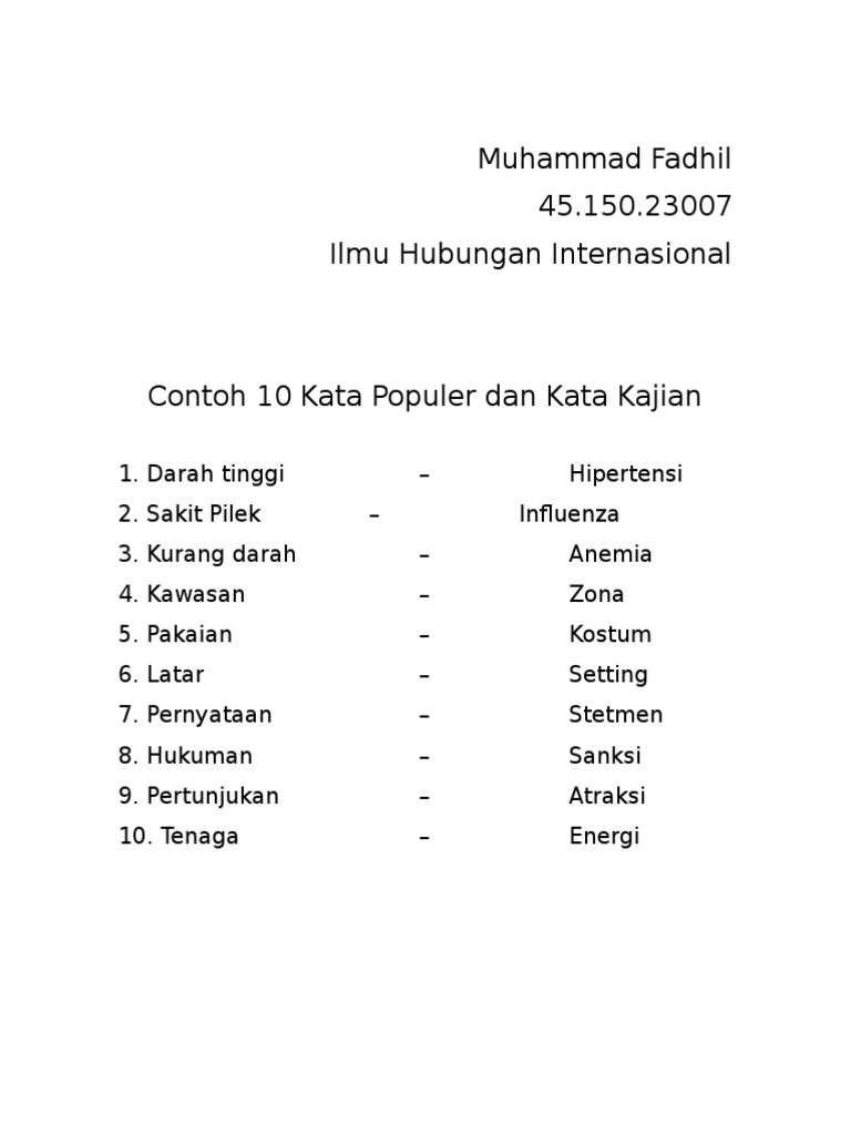 | Lihat 10 Contoh Dan Artinya Kata Populer Dan Kata Kajian |